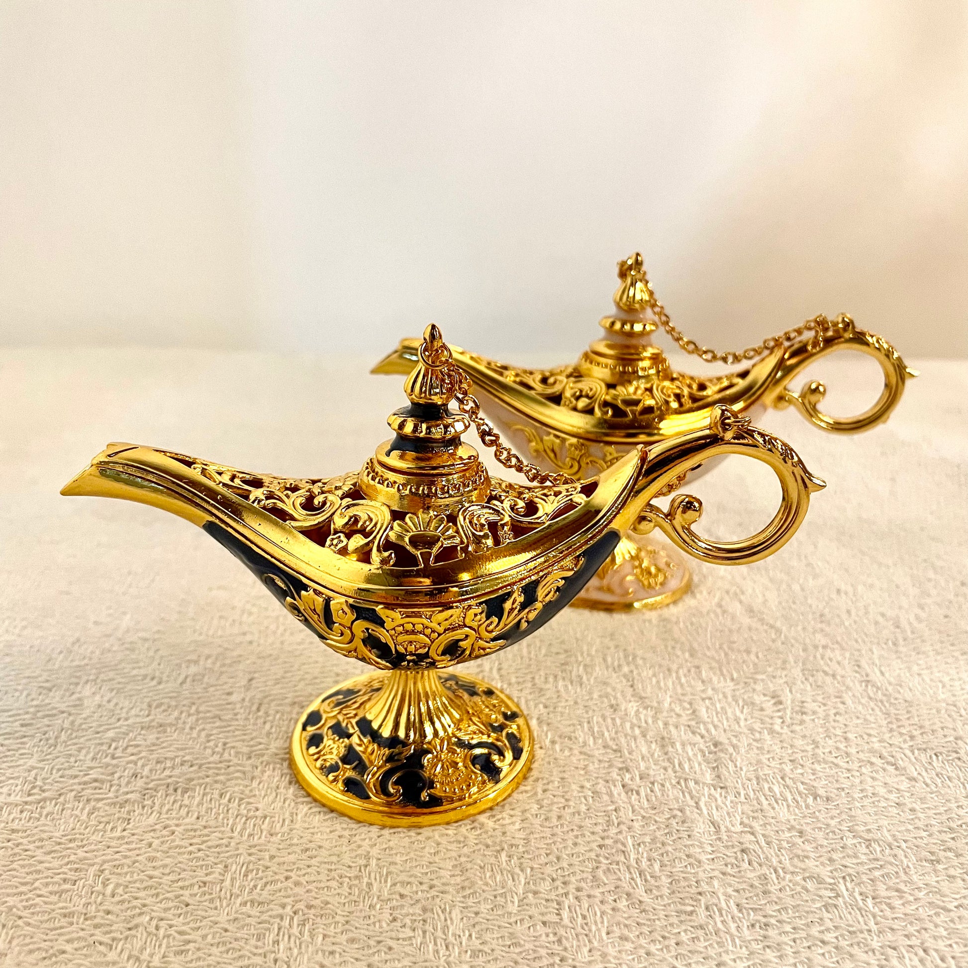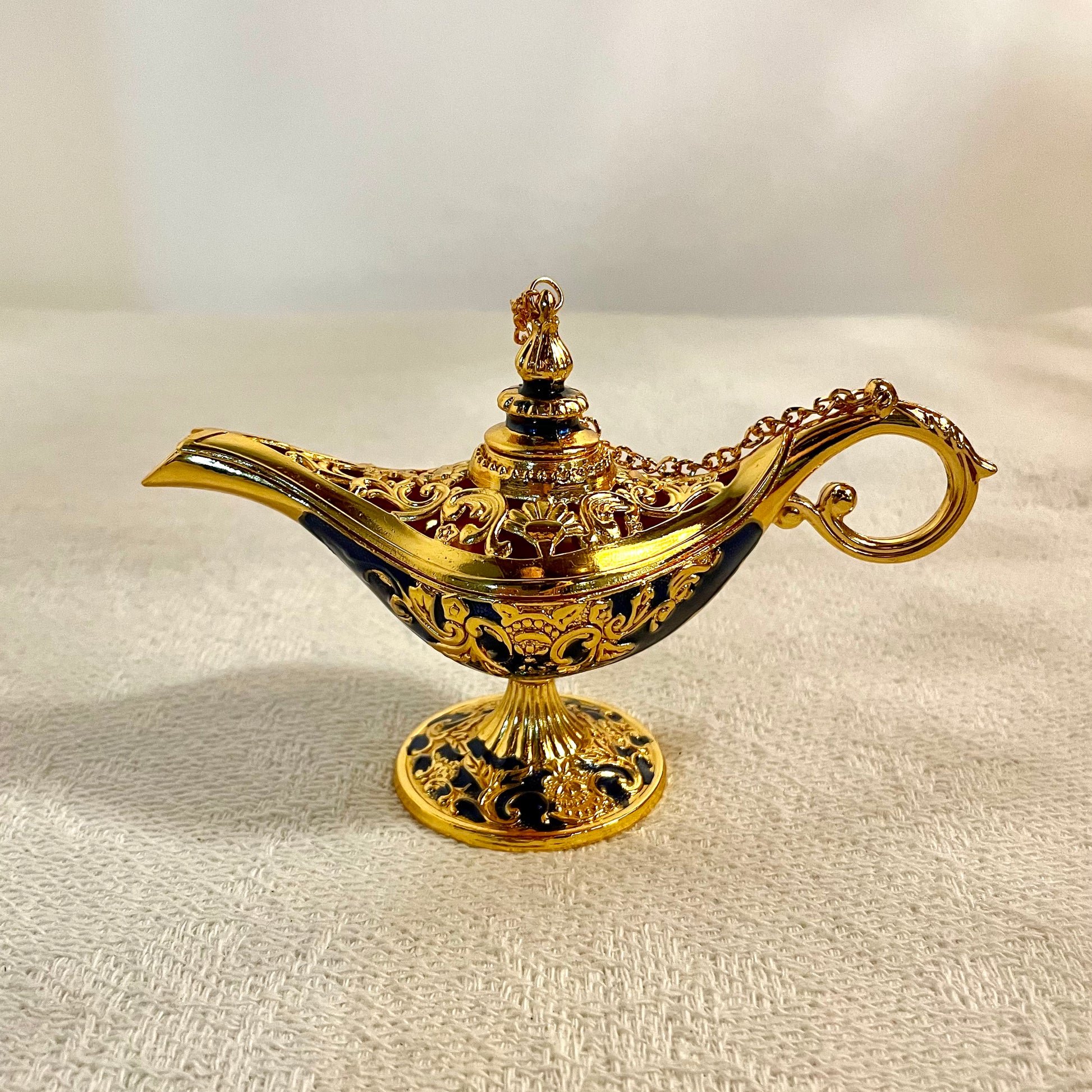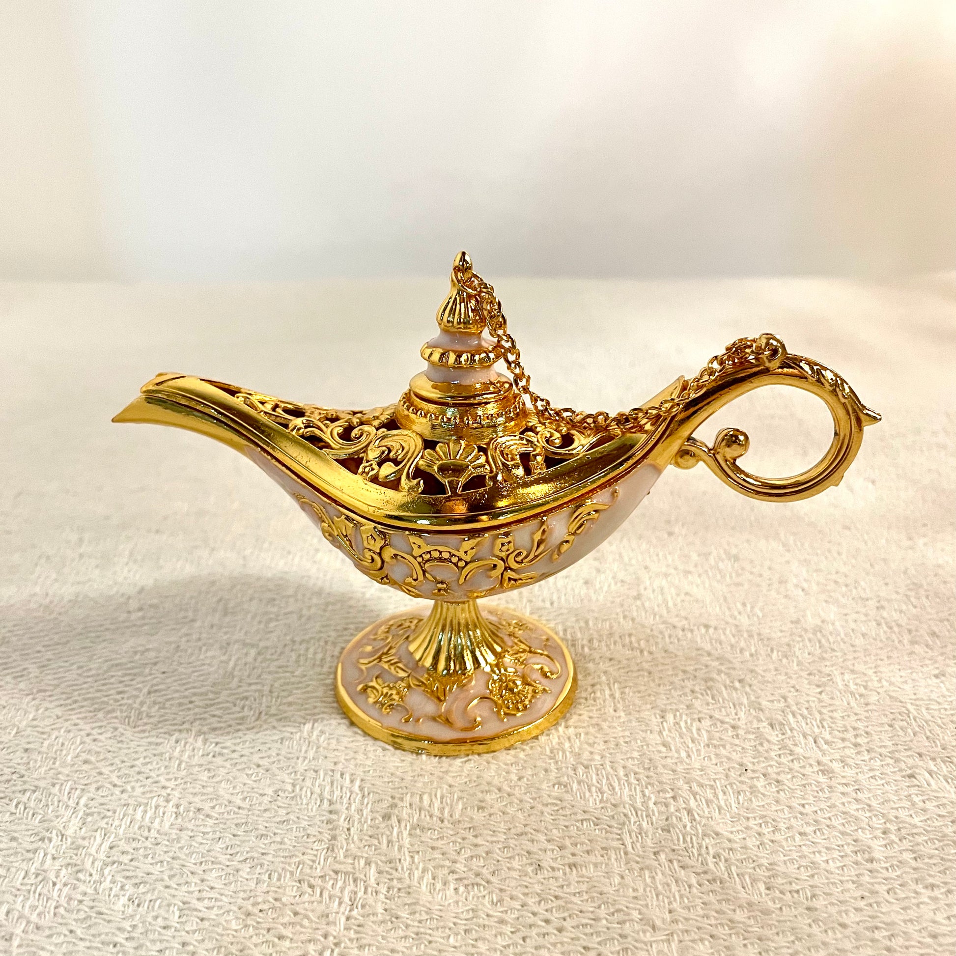 阿拉丁神燈原為古代阿拉伯油燈,作照明之用,現可作擺設或香薰座。